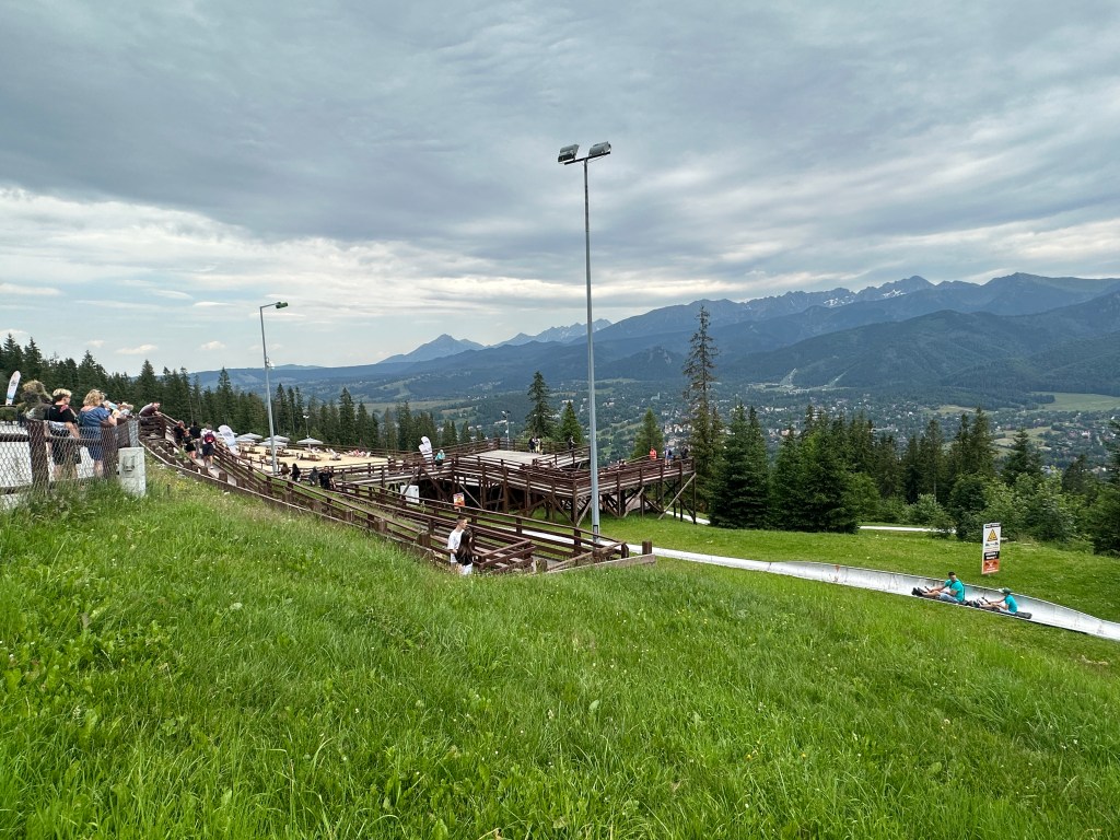 Next, we took a funicular ride to the top of Gubalowka Hill. The view from the top was breathtaking, with panoramic views of the Tatra Mountains. One could easily spend a couple of hours at the top, enjoying the view, the food, and the gravity slide, a thrilling ride down the hill.
