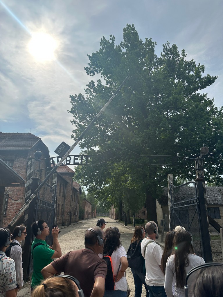 Our tour began at Auschwitz I, the original camp. Walking through the gates bearing the cruelly ironic sign, ‘Arbeit Macht Frei’ (‘Work Sets You Free’), we were immediately confronted with the grim reality of the atrocities committed here.