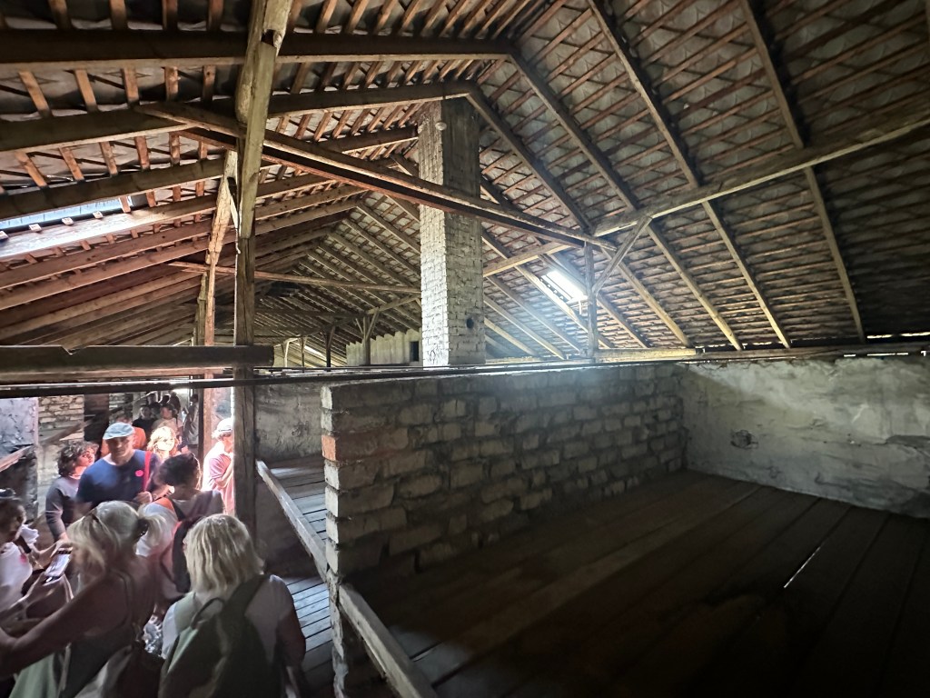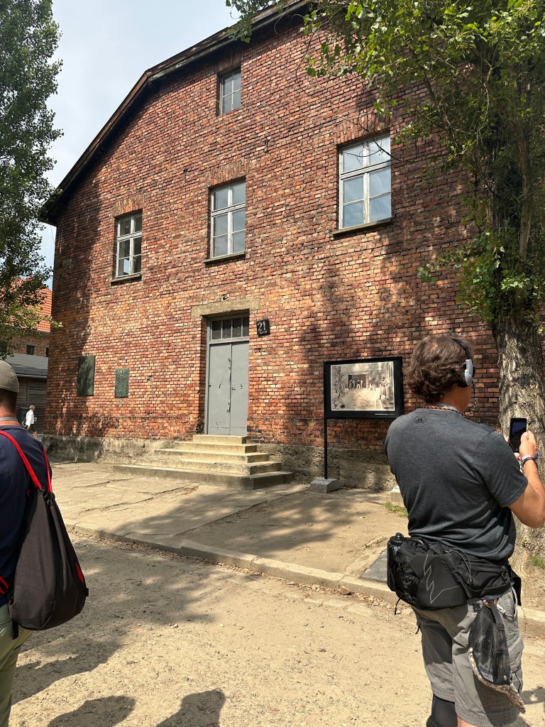 We toured several of the brick barracks buildings, learning about the cruel practices of the guards and witnessing heartbreaking exhibits. One that particularly struck me was a collection of confiscated shoes, a stark reminder of the individuals who once wore them, each with their own story, dreams, and hopes, brutally stripped away. We saw the Wall of Death, where thousands of prisoners were executed, and the horrific living conditions of the inmates.