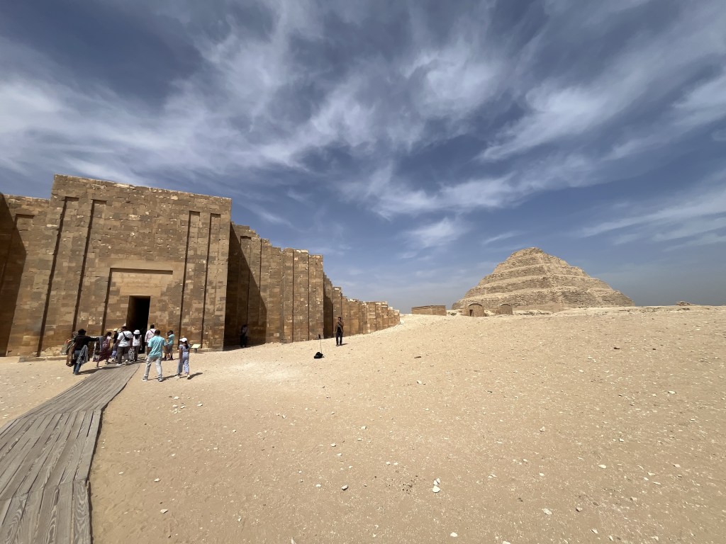 The Egyptian sun greeted us as we set out at 9 AM, destined for the ancient steppe of Saqqara. The Djoser’s Step Pyramid, our first encounter, stood as a testament to architectural innovation, being one of the earliest colossal stone buildings in Egypt—a pacesetter for the pyramids that followed. With its unique tiered design, Saqqara is a delight, boasting a rich necropolis full of tombs.