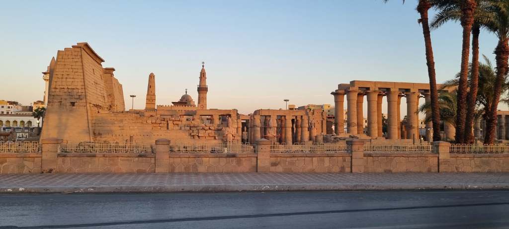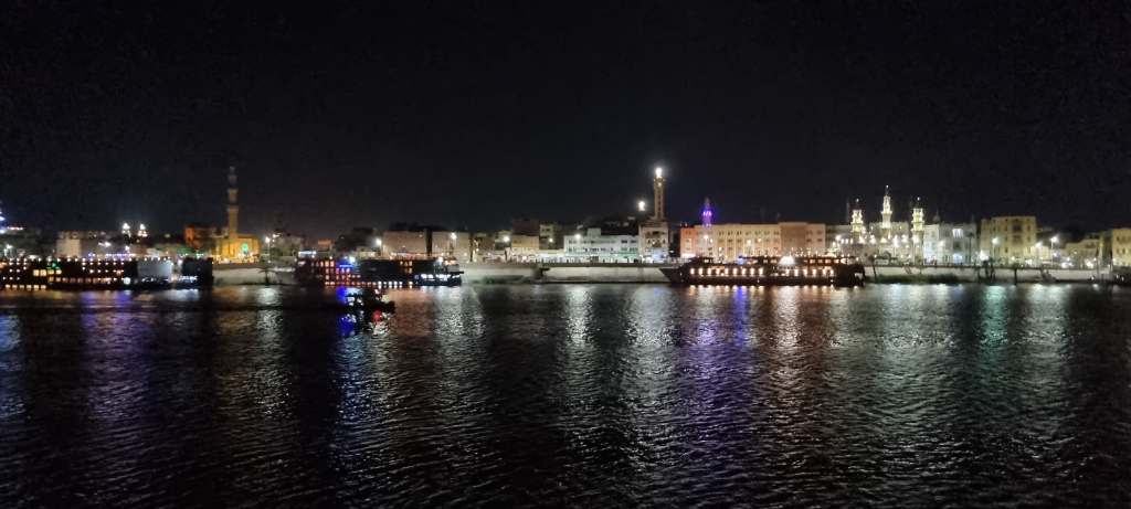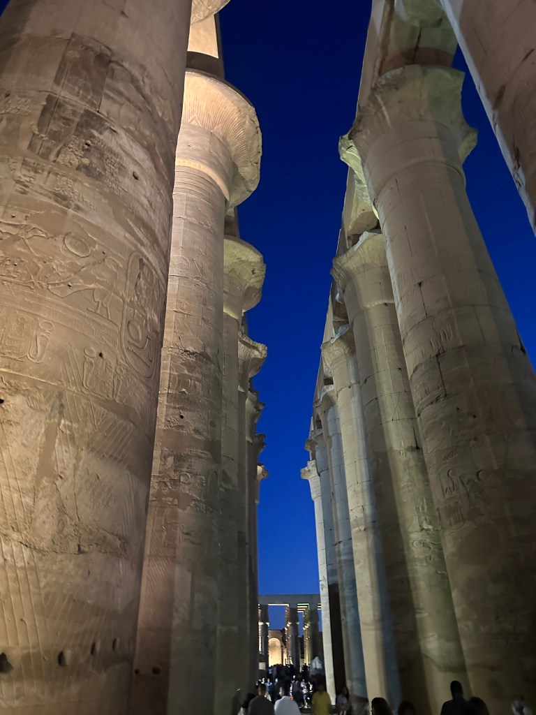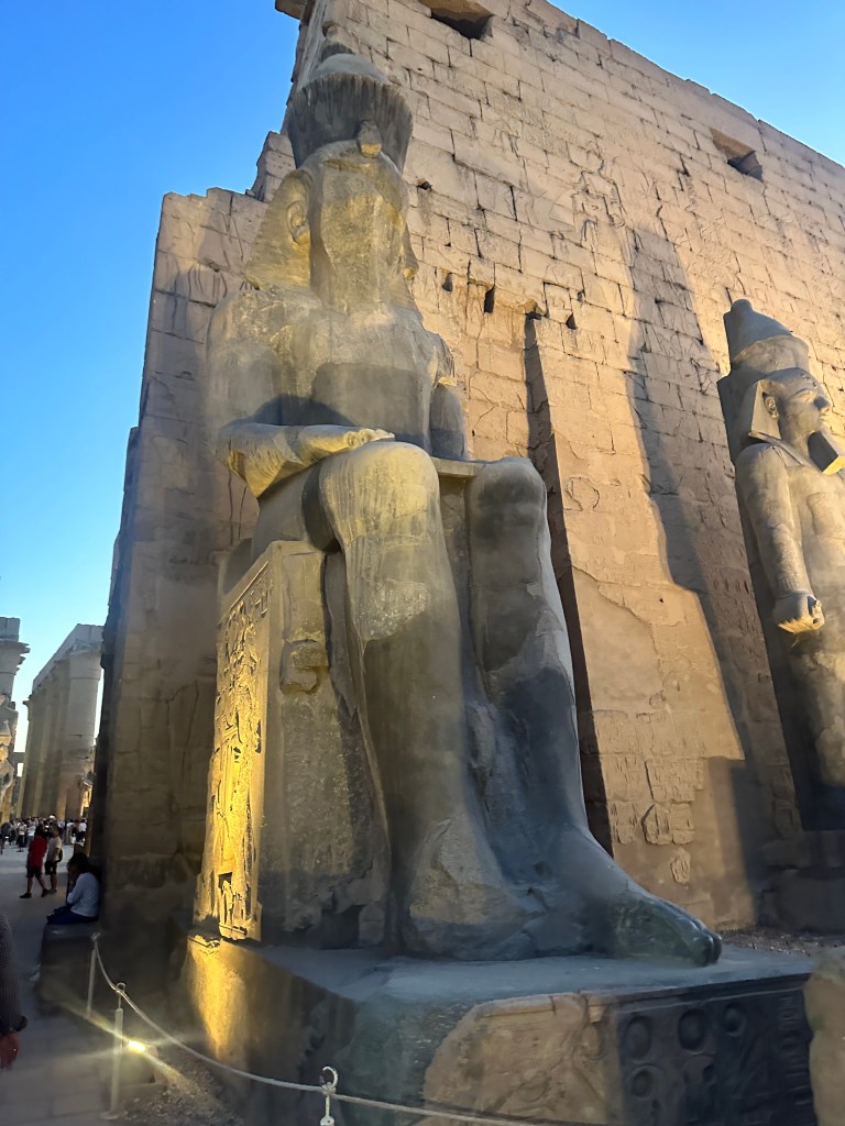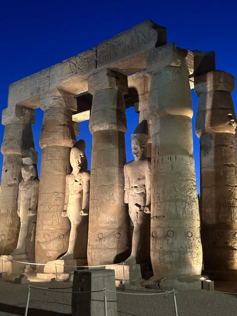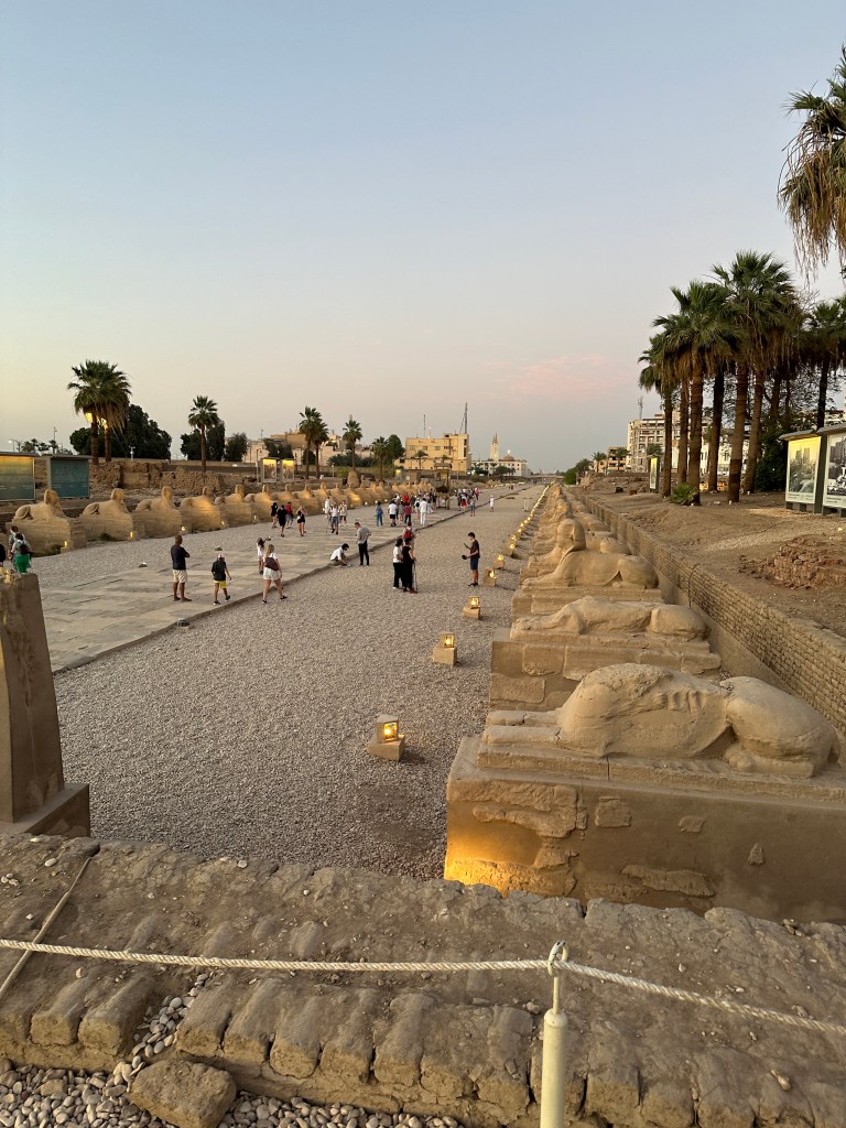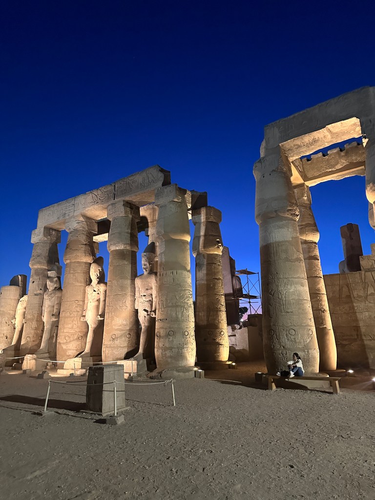 Escaping the heat, we retreated to our cruise, relaxing in the comfort of air conditioning and anticipation for Luxor Temple’s twilight glow. Returning at sunset, we were greeted by the temple in its dual attire of daylight grace and nocturnal majesty. The Avenue of Sphinxes stretched before us for 3 kilometres to Karnak temple, a path once trodden by pharaohs. Known for its spectacular processions and as a site of coronation, Luxor Temple captivates not just with its historical significance but as a photographer’s dream, where every angle and hour offers a new perspective on its timeless beauty.