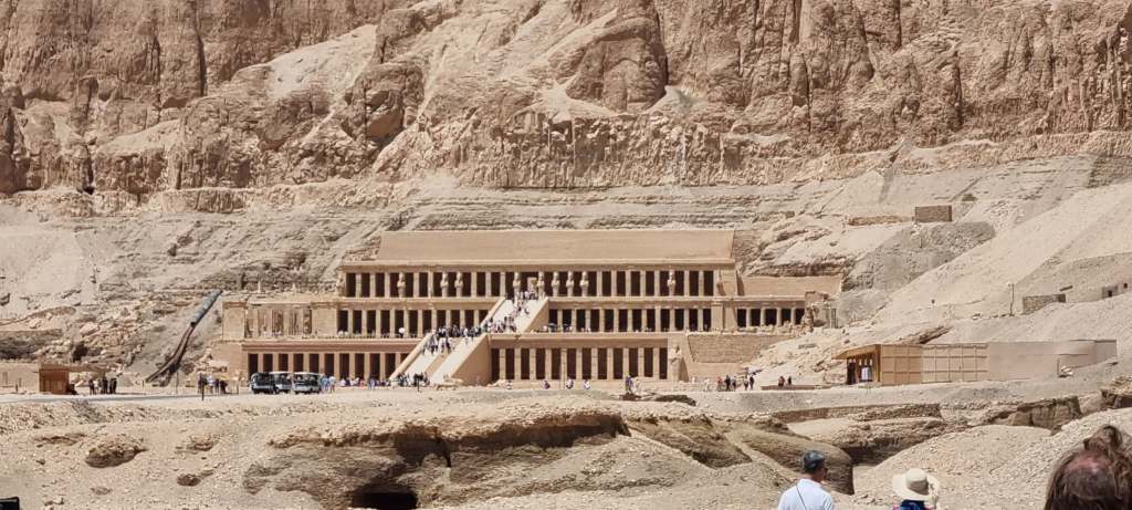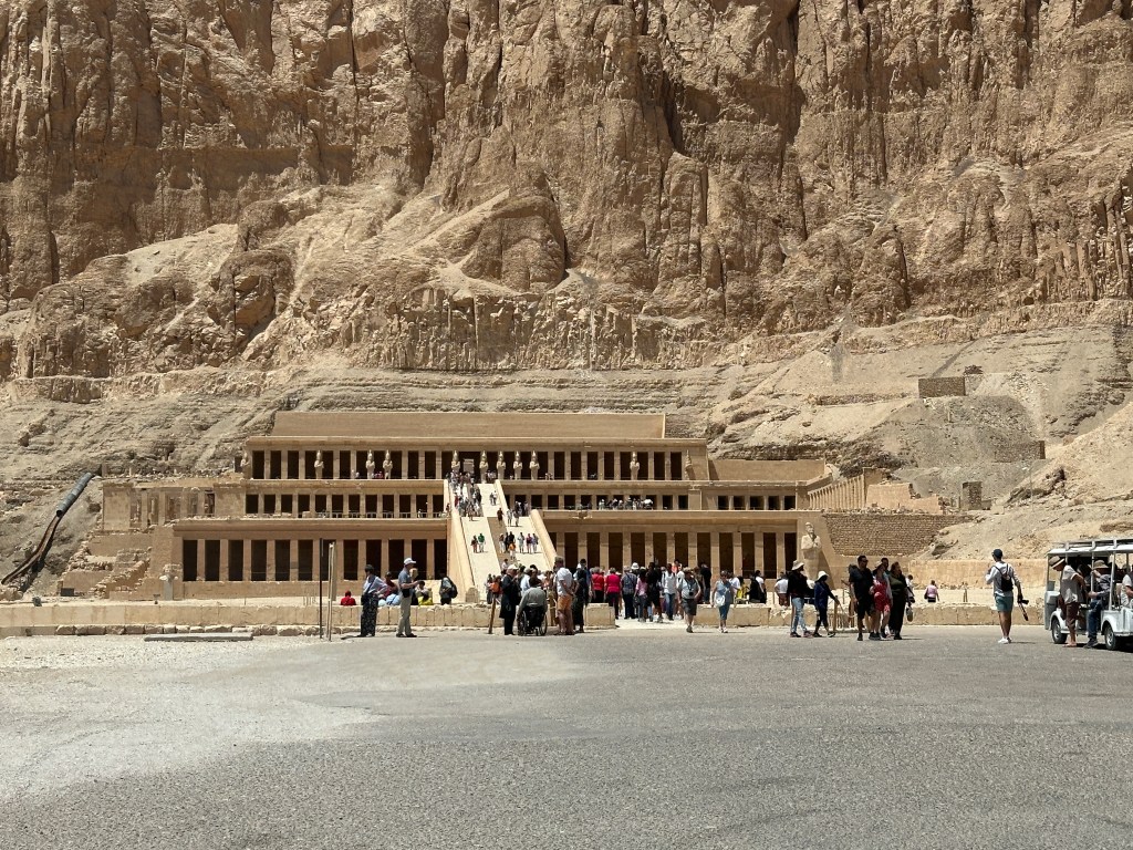 Next, we scaled the heights to the Temple of Hatshepsut, a monument that’s as much a tribute to the queen’s reign as it is to those with the stamina to reach it. The midday sun turned our visit into an impromptu sauna session. Its terraced structure and different architecture was interesting and fascinating as a tourist. However, at this time the heat was getting to us.
