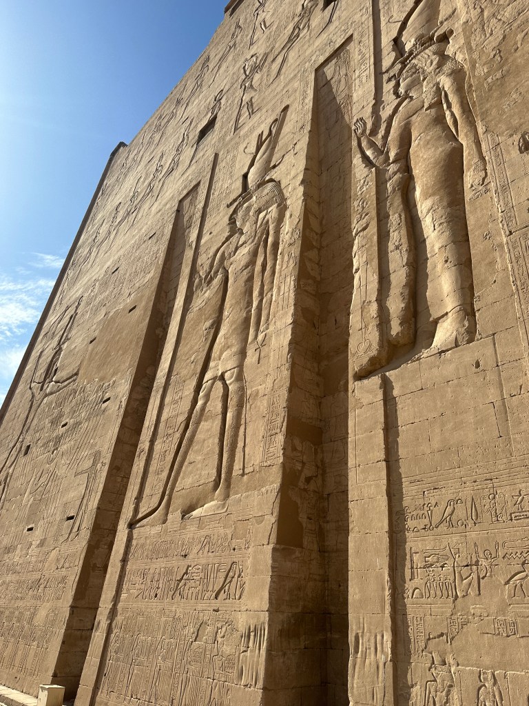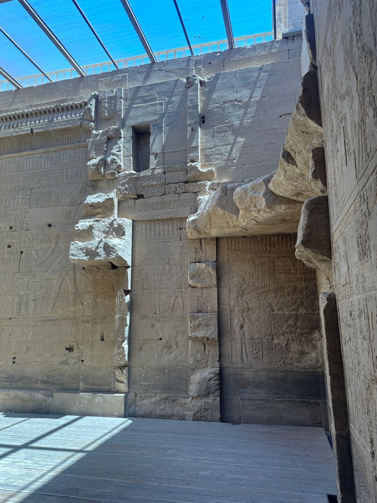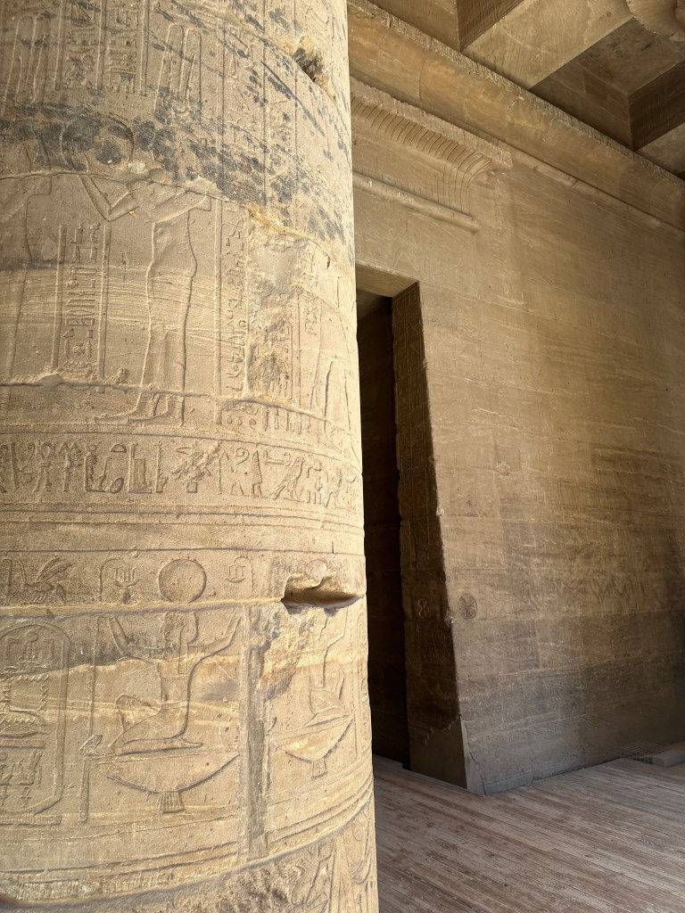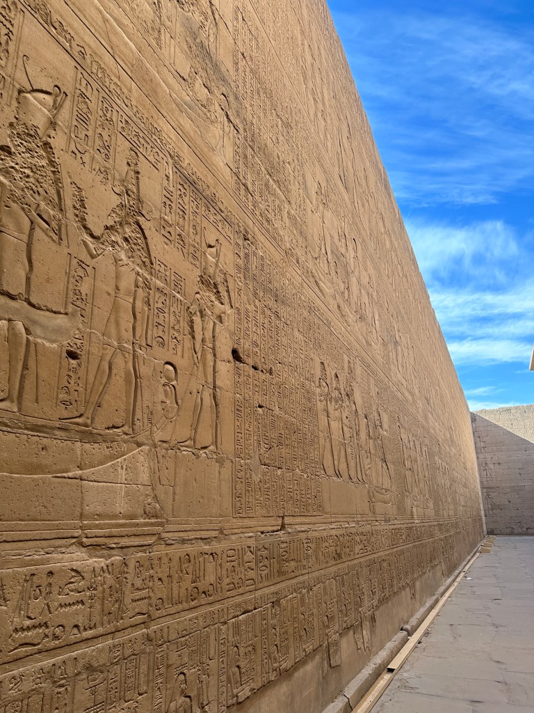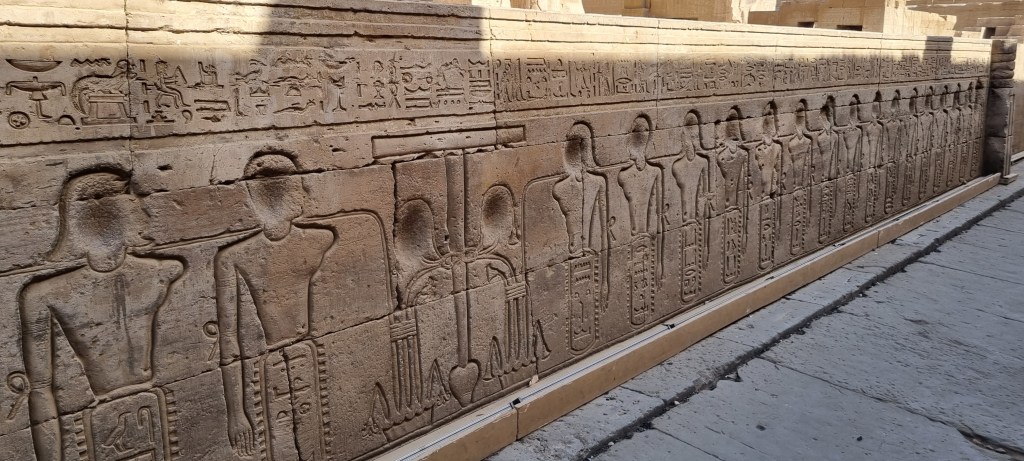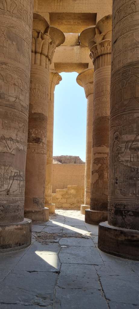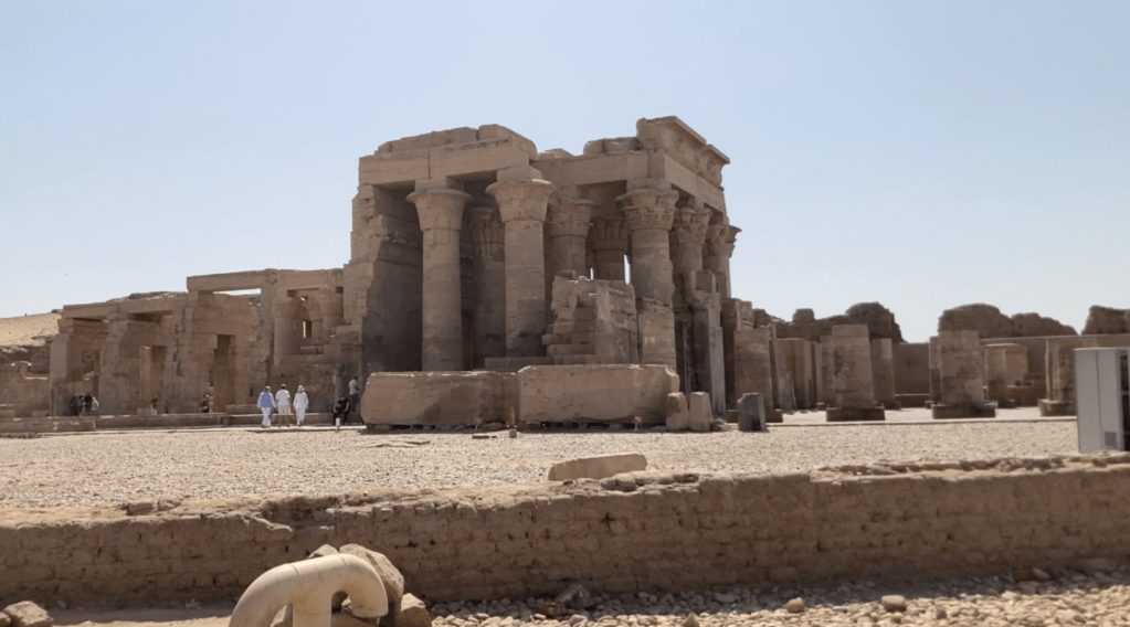 Sailing, our day began with the Nile guiding us to Kom Ombo. Dedicated to both Horus, the falcon god, and Sobek, the crocodile god. This wasn’t just a temple; it was a divine duplex with courtyards and sanctuaries aplenty, showcasing scenes of battles and divine offerings. Inside, we encountered mummified crocodiles and a nilometer, but the real jaw-dropper? Hieroglyphs detailing ancient medical practices, from C-sections to surgical tools, which is incredible to think that these tools were invented like 3000 years ago.