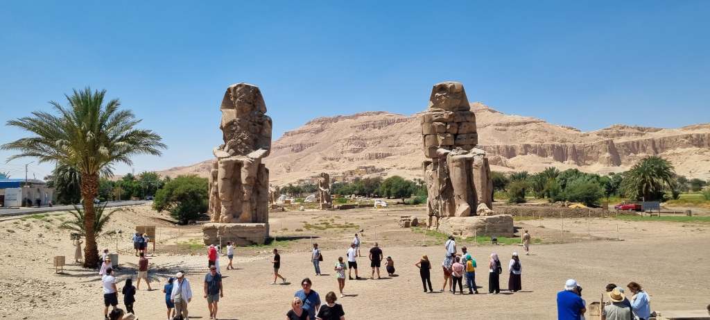 A brief pause at the Colossi of Memnon offered a moment of awe which were towering statues standing guard all for the grand prize of zero pounds.