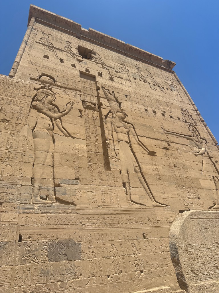 Next up, the Philae Temple built during the Greco roman period, accessible only by a quaint boat ride, felt like drifting into a dream. This jewel of ancient architecture, dedicated to the goddess Isis, sits elegantly on an island, its pillars and carvings narrating tales of gods mingling with mortals. Walking through its halls, the delicate hieroglyphs and majestic columns felt very magical but the weather of the scorching sun was not a great accompaniment.