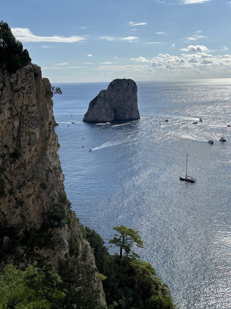 Though Via Roma is on the pricier side, it’s worth a stroll for its mix of high-end shops and local brands. The street also offers some of the best views on the island, making it a must-see. Unfortunately, I wasn’t feeling great, so after lunch, I retreated to the hotel for some rest. But if you’re in better health, Giardini di Augusto is just a short walk away, offering spectacular views of the Faraglioni rock formations and the dramatic Via Krupp.