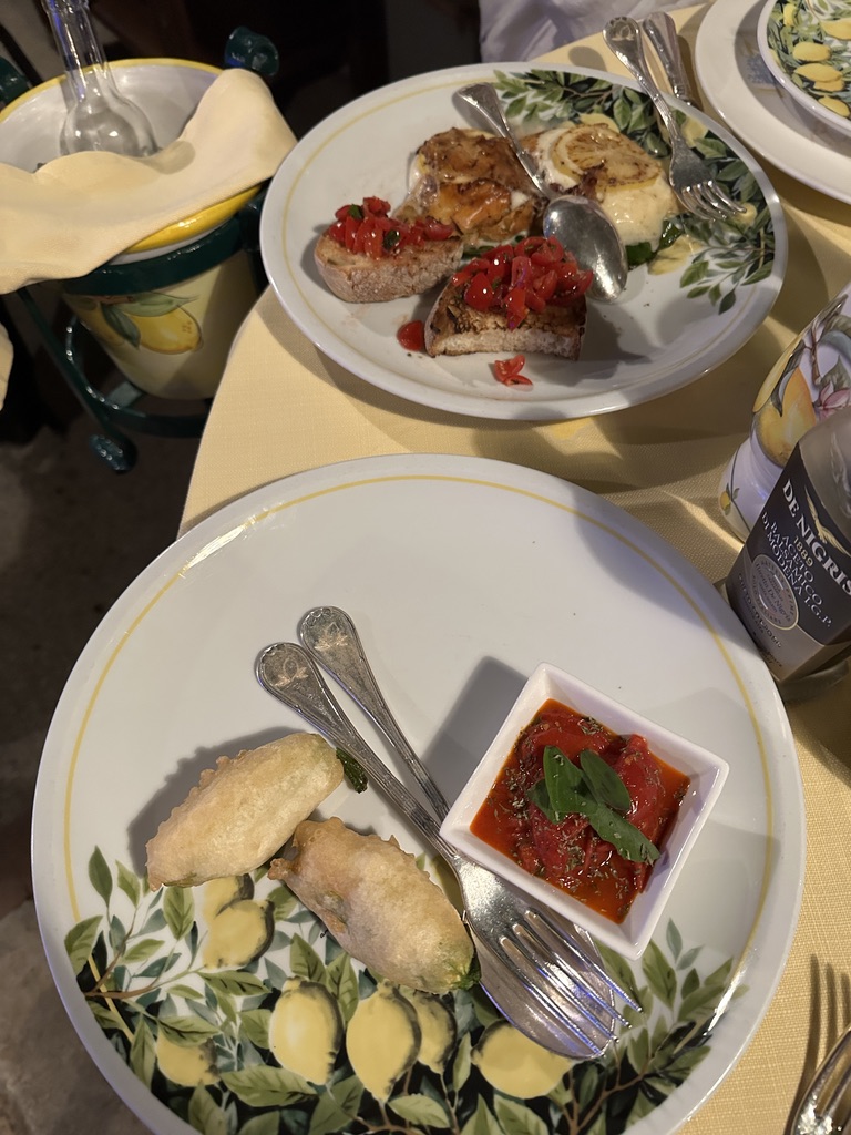 After brunch, we spent the day strolling the main street, shopping, and soaking in the views from every angle. We took a walk down to the beach, stopping for pastries from a nearby bakery on the way back to the hotel. Dinner that night was at Da Vincenzo, which, while good, didn’t quite live up to its hype. The potatoes and artichokes were excellent, but the pasta didn’t fully hit the mark for me. Still, it was a lovely meal with a great atmosphere.
