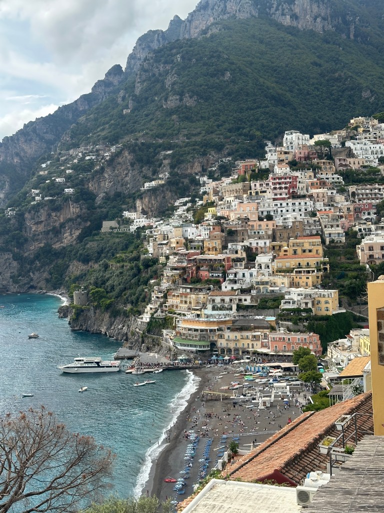 When we finally arrived—after climbing about 500 steps and handing over €50, which is a hefty fee, to porters to ensure our luggage reached the hotel—we were welcomed by Villa Nettuno, a small, charming hotel just minutes from the beach. The views? Unbelievable. I could have easily spent the entire trip on that balcony and called it a success. Positano is the kind of place where simply existing feels like an event. Even just sitting and watching the sun dip below the horizon makes you feel like you’re part of something special.